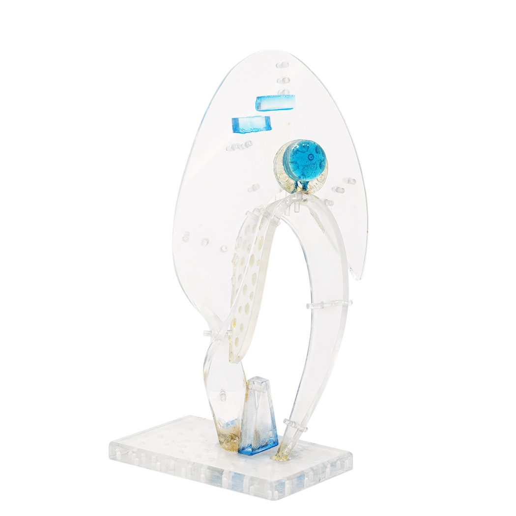 Escultura en acrílico. Firmada Kosice, sobre la base. Mide: 36 x 20 x 12 cm.