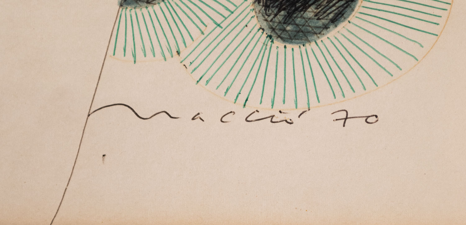 Técnica mixta. Firmada y fechada Macció, 1970, abajo al centro. Mide: 64 x 47 cm. Ref.: El comprador podrá tramitar el certificado de autenticidad correspondiente a esta obra ante la familia del artista.