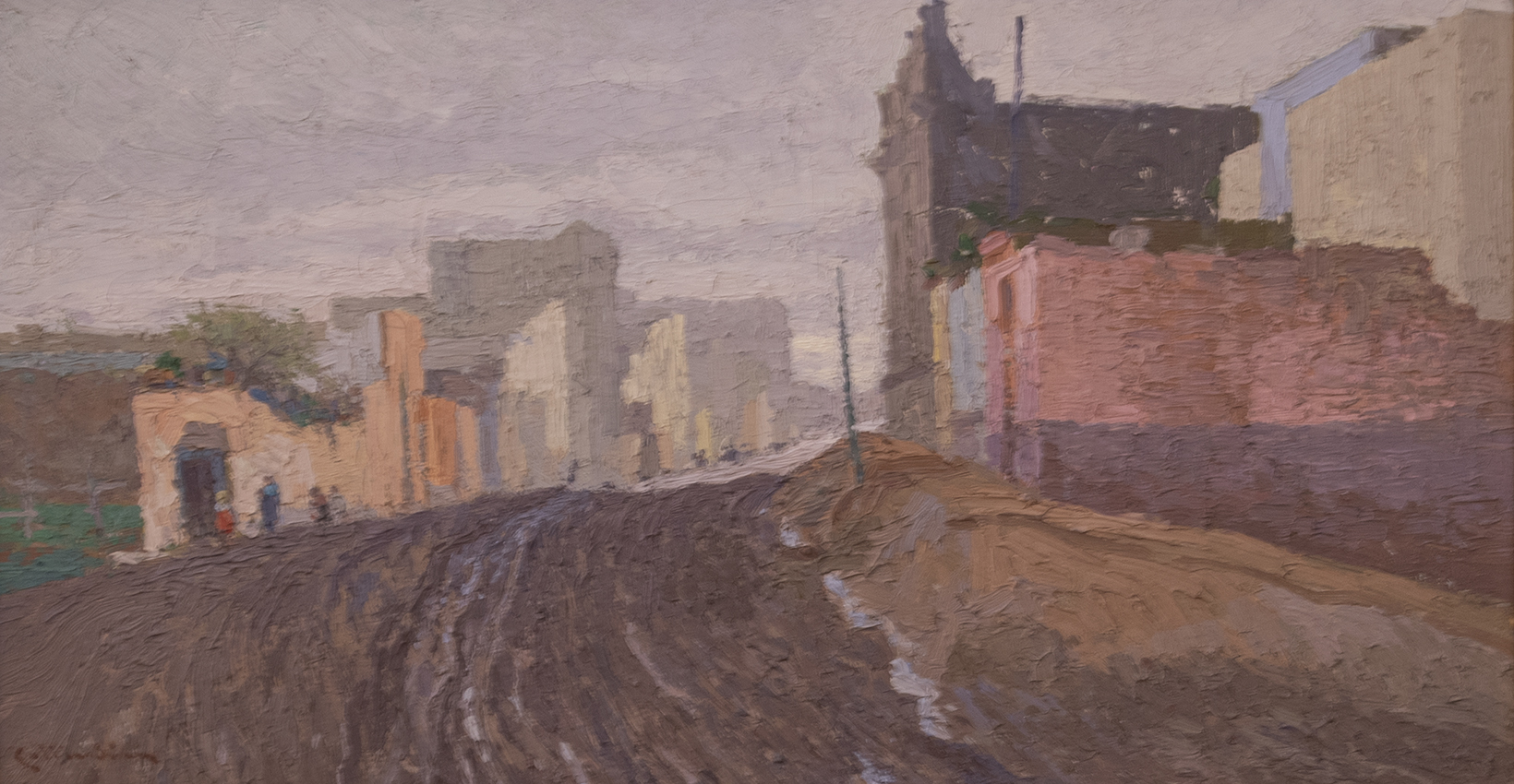 Óleo sobre tabla. Firmado Collivadino, abajo a la izquierda. Mide: 29 x 55 cm. Ref.: Al dorso, etiqueta expedida por la Academia Nacional. Exposición Homenaje a Pío Collivadino, agosto 1946. Ex colección Adalberto Fontana.