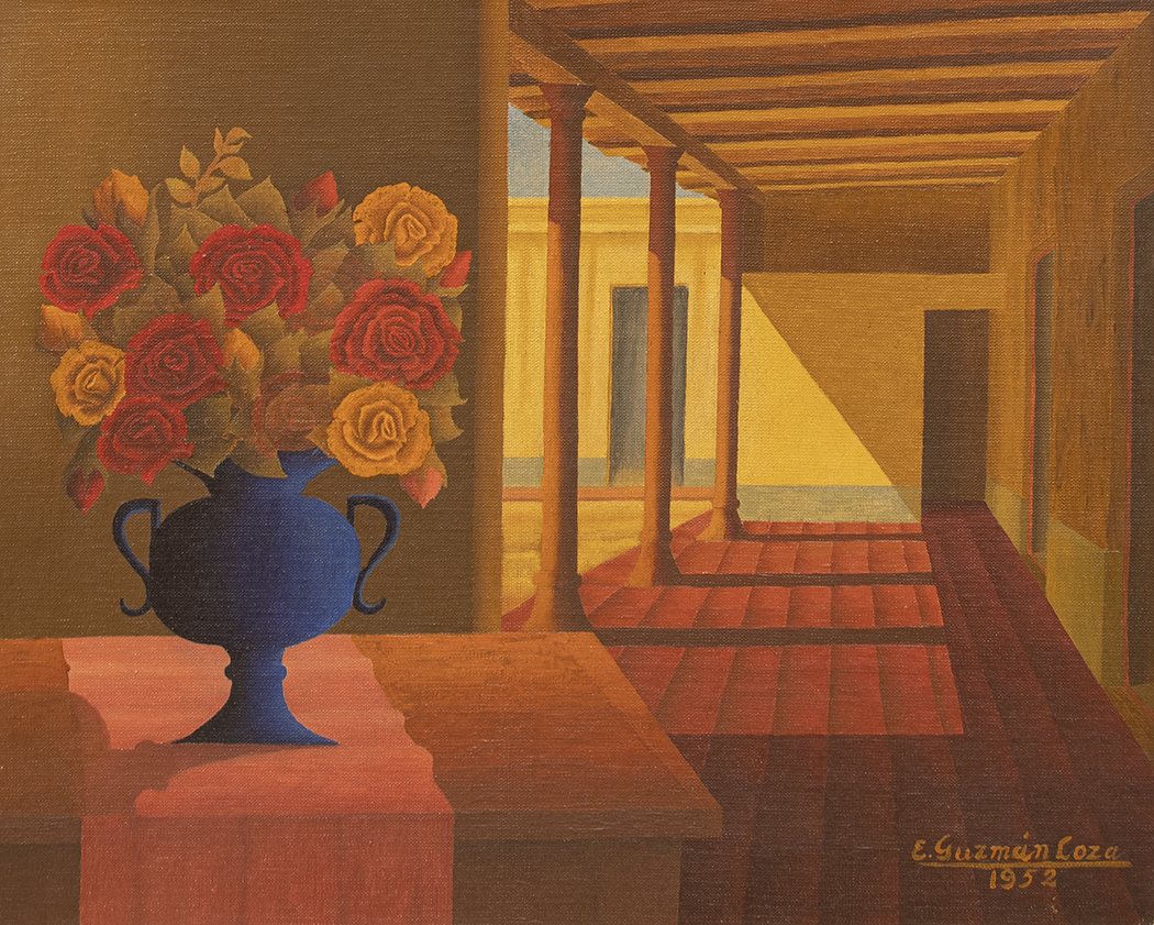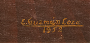 Óleo sobre tela montada en hardboard. Firmado y fechado E. Guzmán Loza, 1952, abajo a la derecha. Mide: 44 x 54 cm.