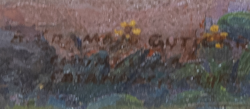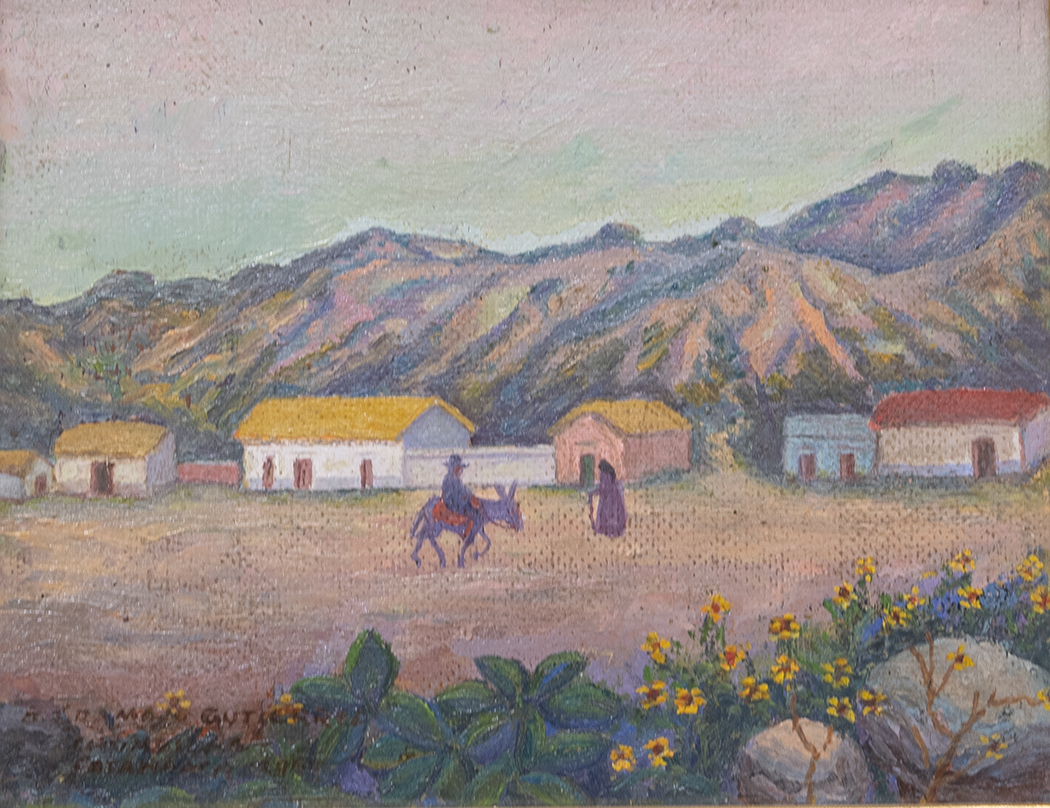 Óleo sobre tela montado en cartón. Titulado, firmado y fechado Gramajo Gutiérrez, Catamarca, 1953, abajo a la izquierda. Mide: 19 x 24 cm.