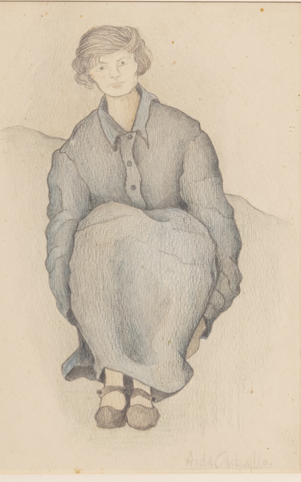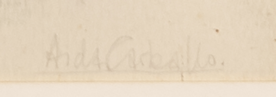 Dibujo a lápiz color. Firmado Aida Carballo, abajo a la derecha. Mide: 23 x 15 cm. Ref.: Al dorso, firmado Aida Carballo. Etiqueta expedida por el Museo Nacional de Bellas Artes. Etiqueta con datos de la obra. 1955.