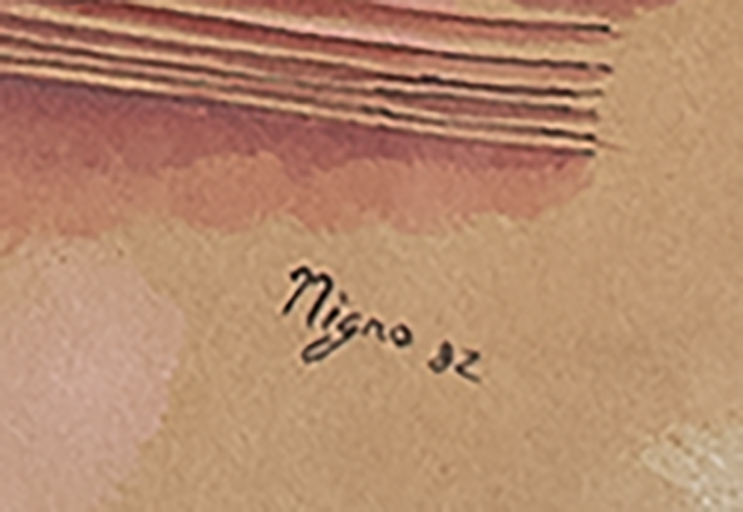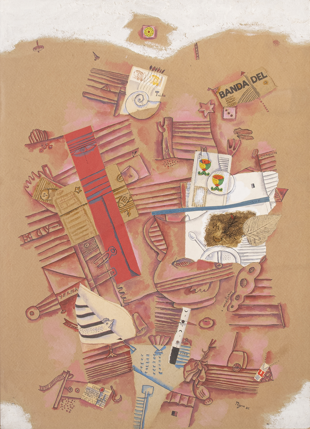 Collage sobre papel. Firmado y fechado Nigro/82, abajo a la derecha. Mide: 68 x 49 cm. Ref.: Al dorso, titulado, firmado y fechado. Reproducido en Adolfo Nigro en el umbral de la imagen, Andrea Guinta, La Marca Editora, 2003, pág. 103.