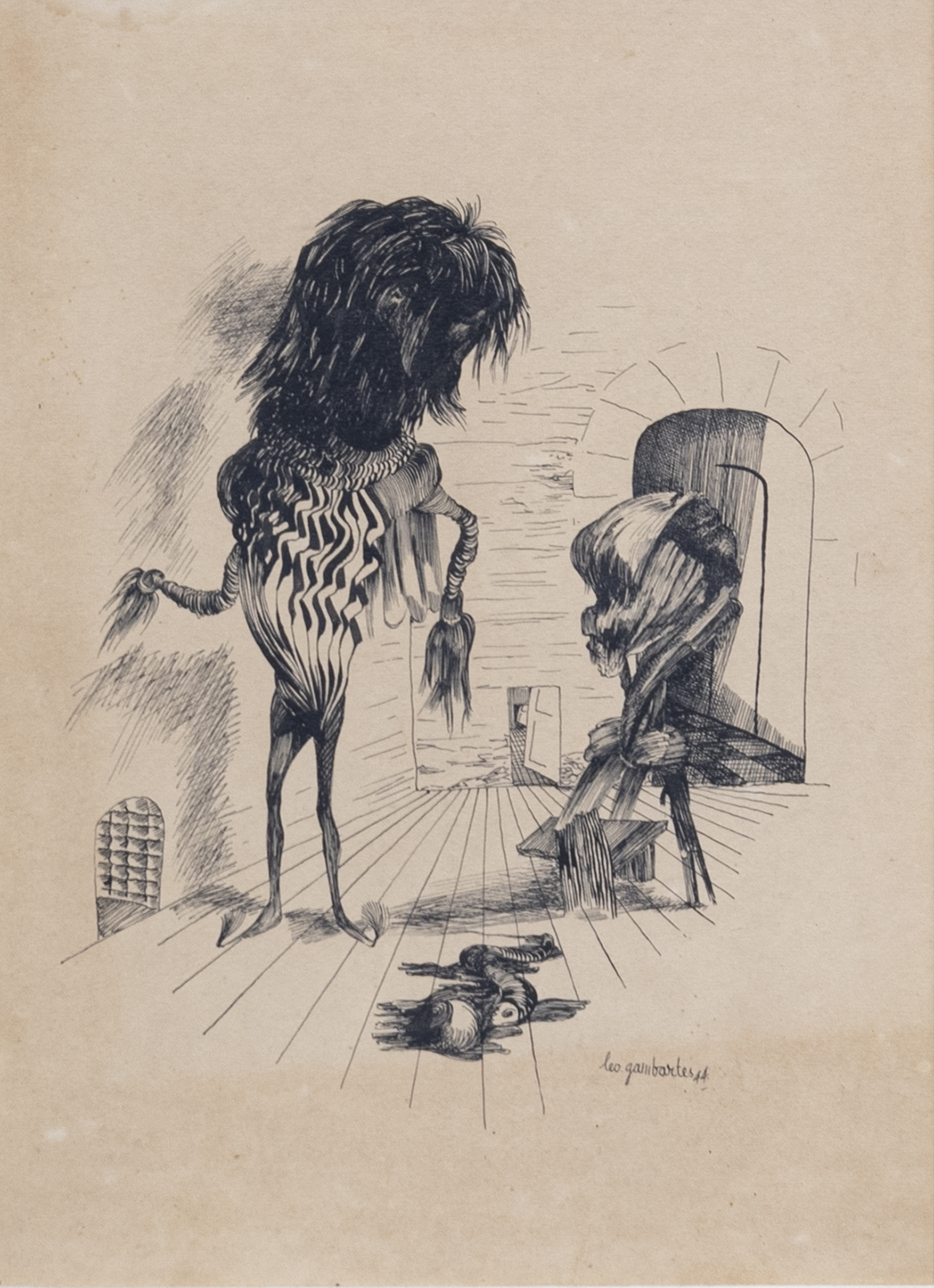 Tinta sobre papel. Firmada y fechada Leo. Gambartes, abajo a la derecha. Mide: 28 x 20 cm.
