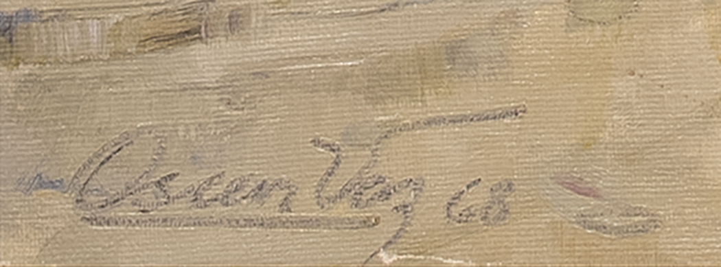 Óleo sobre Firmado y fechado Oscar Vaz/68, abajo a la izquierda. Mide: 68 x 88 cm. Ref.: titulado y firmado Óscar A. Vaz. Etiqueta con biografía emitida por Galería Argentina.