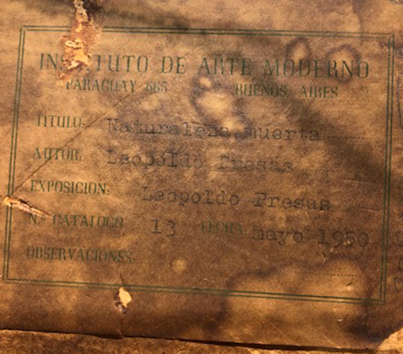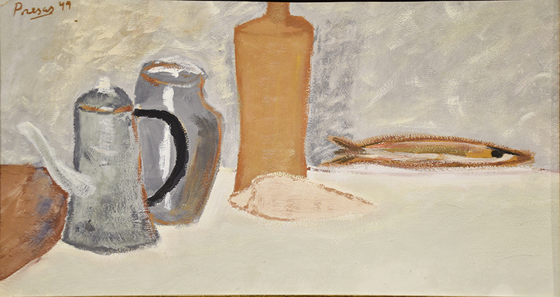 Óleo sobre cartón. Firmado y fechado Presas/49, arriba a la izquierda. Mide: 34 x 64 cm. Ref.: Al dorso, etiqueta del Instituto de Arte Moderno, con datos de la obra.