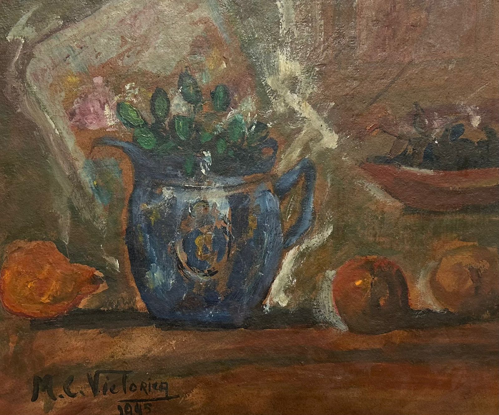 Óleo sobre hardboard. Firmado y fechado M. C. Victorica, 1945, abajo a la izquierda. Mide: 40 x 49 cm. Ref.: Al dorso, etiqueta expedida por Zurbarán Galería, con datos de la obra.