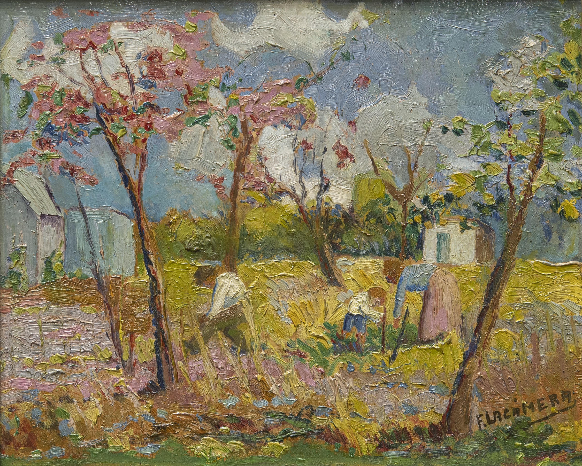 Óleo sobre cartón. Firmado F. Lacámera, abajo a la derecha. Mide: 27 x 22 cm. Ref: Al dorso, etiqueta de Galería Pizarro, con datos de la obra fechado1966.