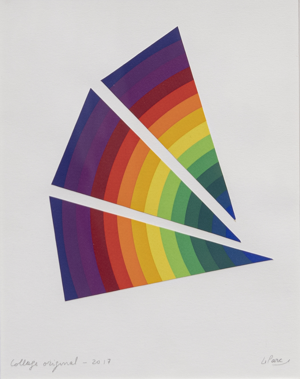 Collage. Firmado Le Parc, abajo a la derecha y fechado, 2017, abajo a la izquierda . Mide: 26 x 20 cm.
