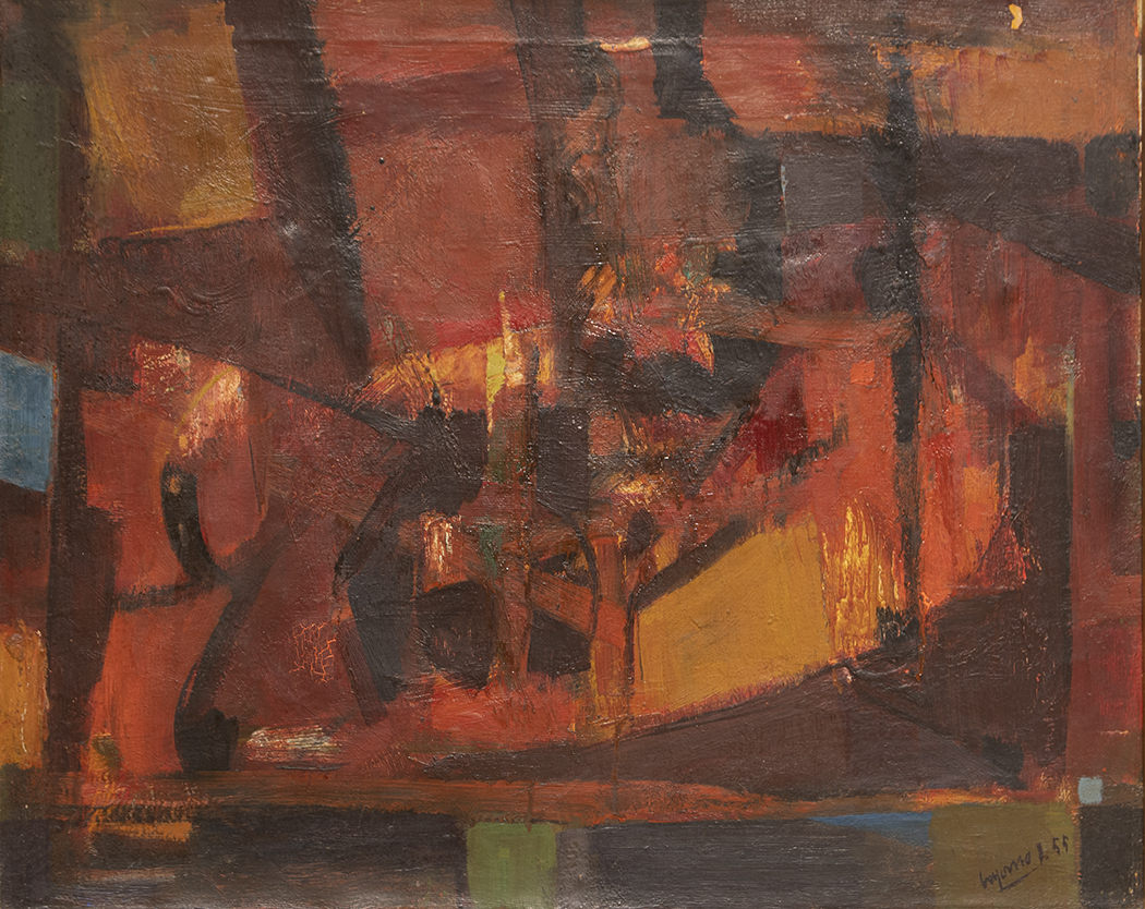 Oleo sobre tela. Firmado y fechado Cogorno/55, abajo a la derecha. Mide: 55 x 72 cm. Ref.: Al dorso, firmado Santiago Cogorno. Etiqueta de la 22ª Bienal de Venecia, año 1956.